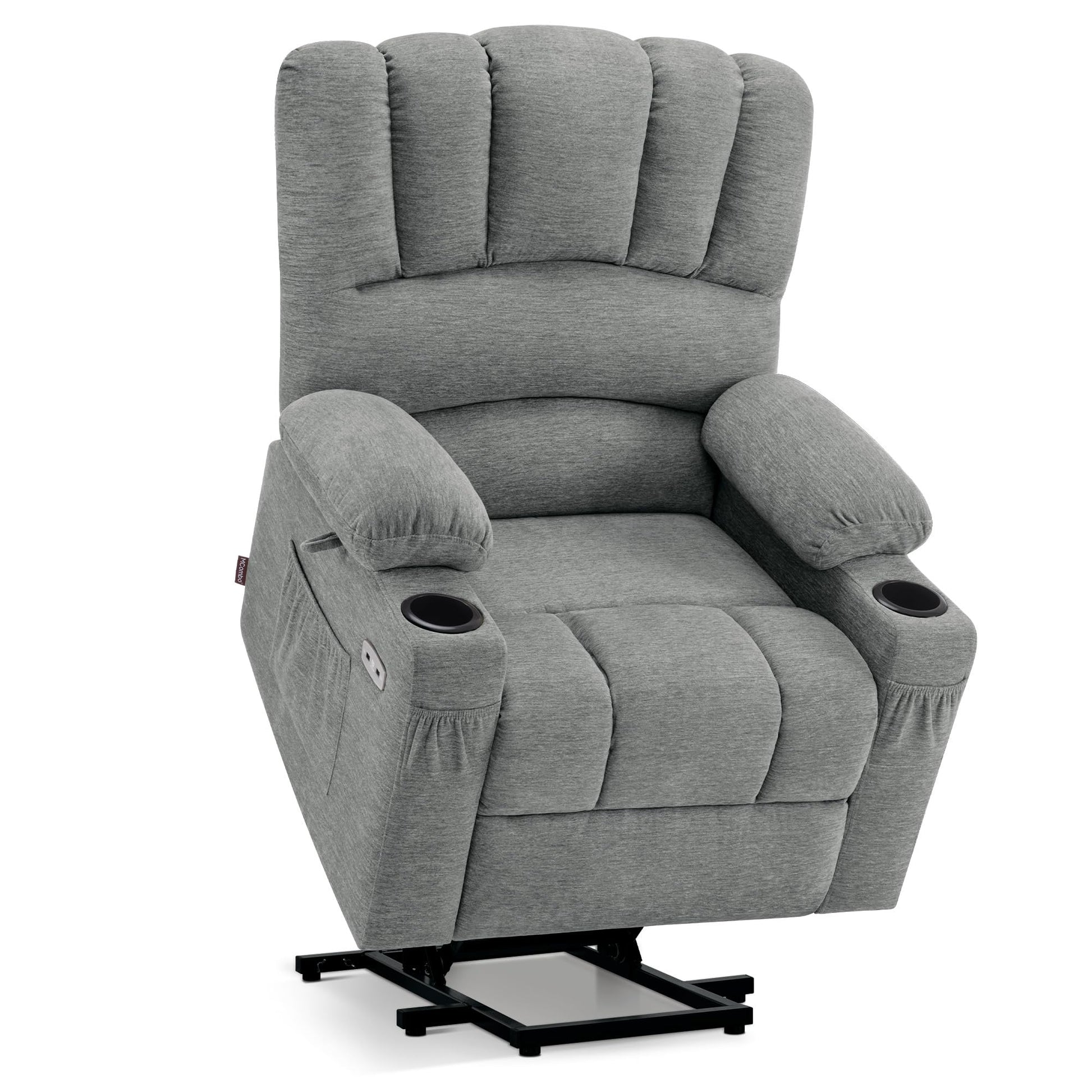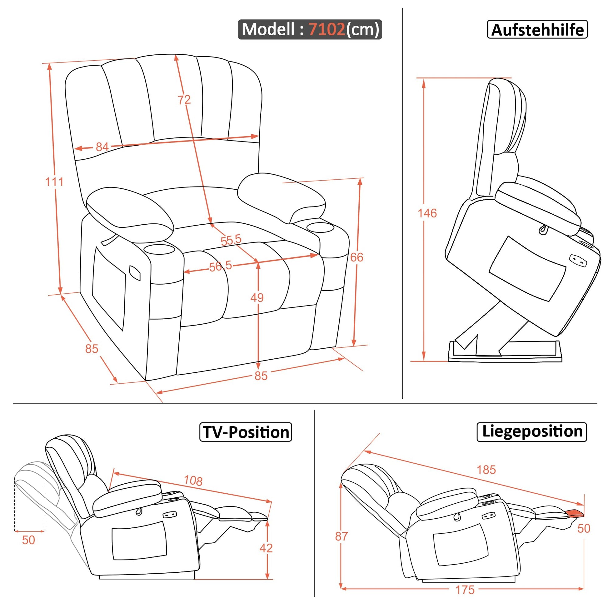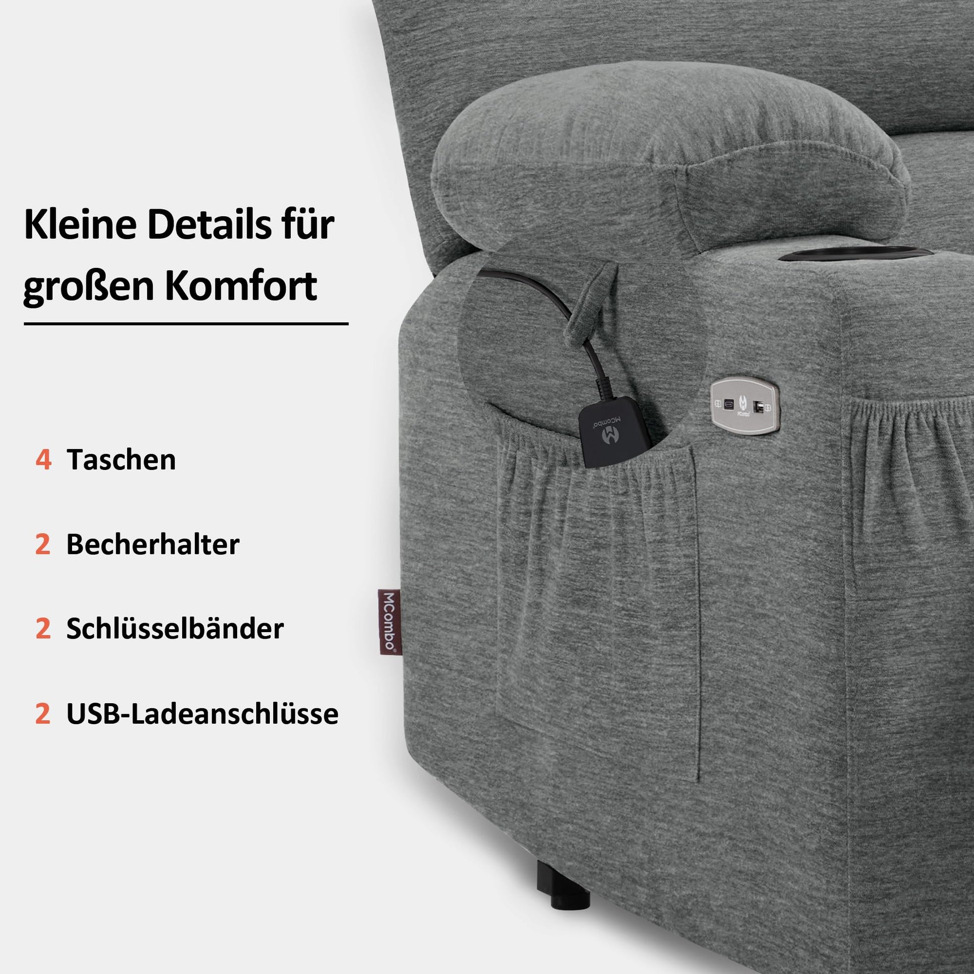 M MCombo Sillón de TV eléctrico con Ayuda para levantarse, sillón Relax con función reclinable, sillón de Masaje con función de Calor, para Personas Mayores de salón, 7102 (Tela, Gris)
