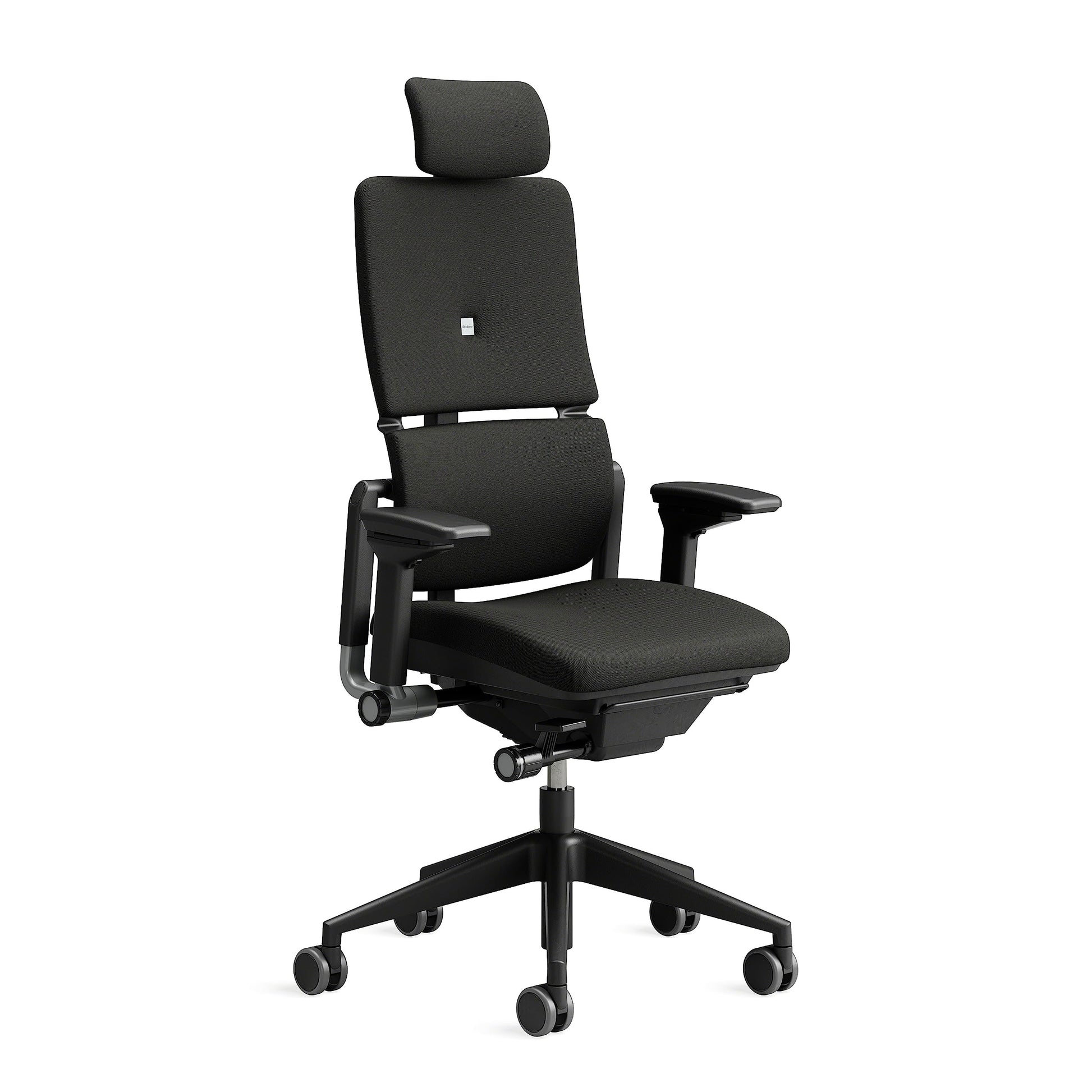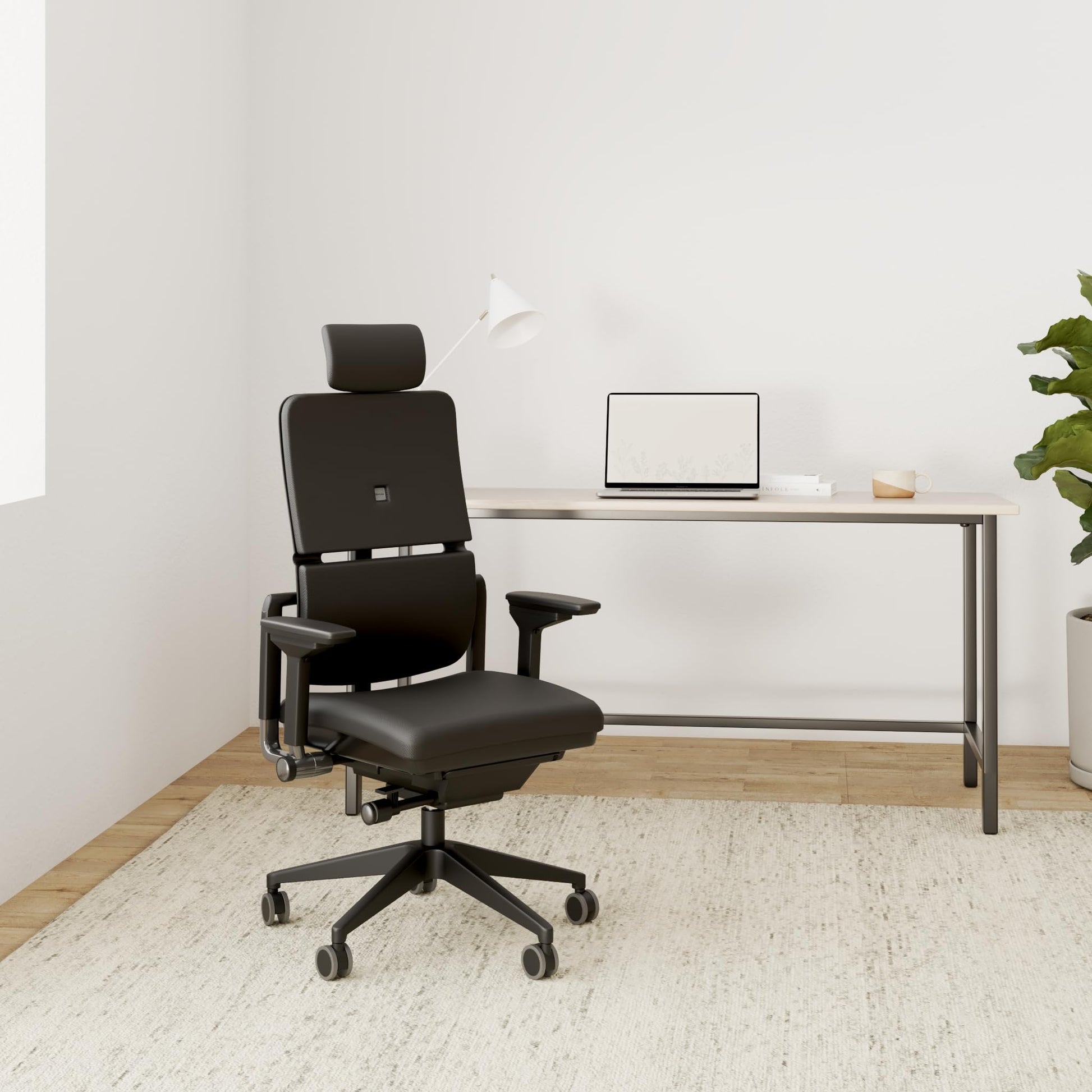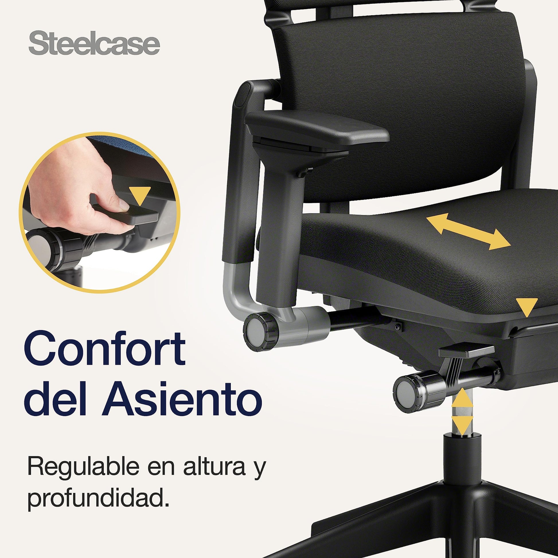 Steelcase Please, silla de oficina ergonómica con respaldo alto regulable en altura, brazos regulables y reposa cabeza regulable Ónix
