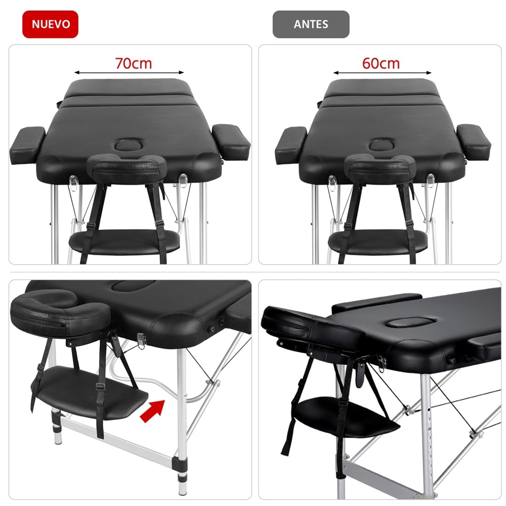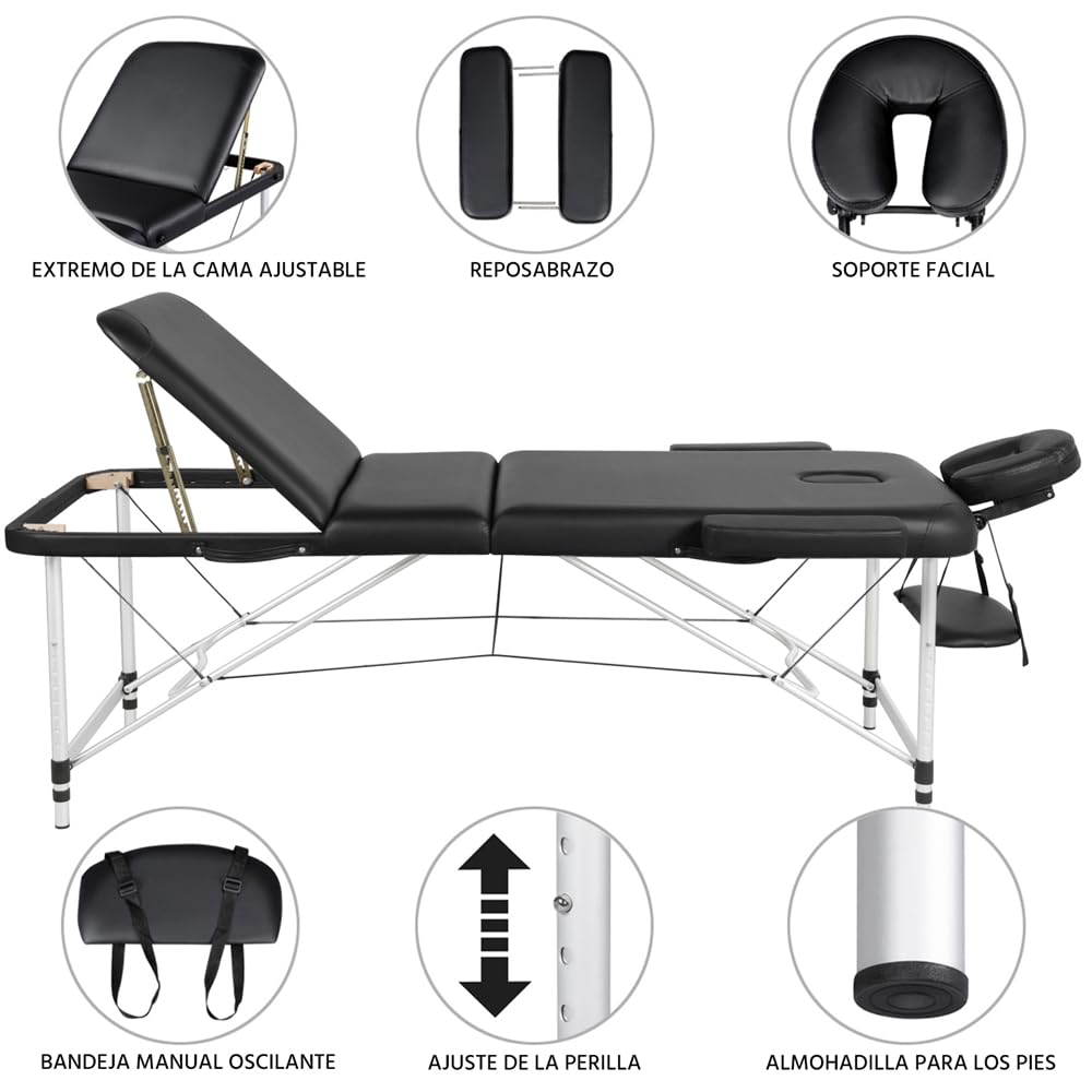 Yaheetech Camilla Masaje Plegable de 3 Zonas Camilla Estetica Portátil Profesional de de 92 cm de Ancho Altura Ajustale con Bolsa de Transporte Negro